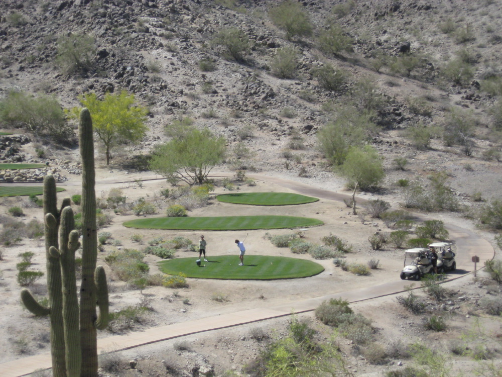 After lunch the girls were getting ready for a big shopping trip to Chandler Fashion Mall. Ed Peters came by at 2:30 to pick Tim and me up for golf. Tim and I shared a cart. Great start. First hole Ed got a little upset about missing some putts. After that, we all played pretty good. I had some good hits, and some not so good hits. But no real disasters. By the time we stopped to pick up some beers before the second nine, none of us had scored an 8. So that was good.