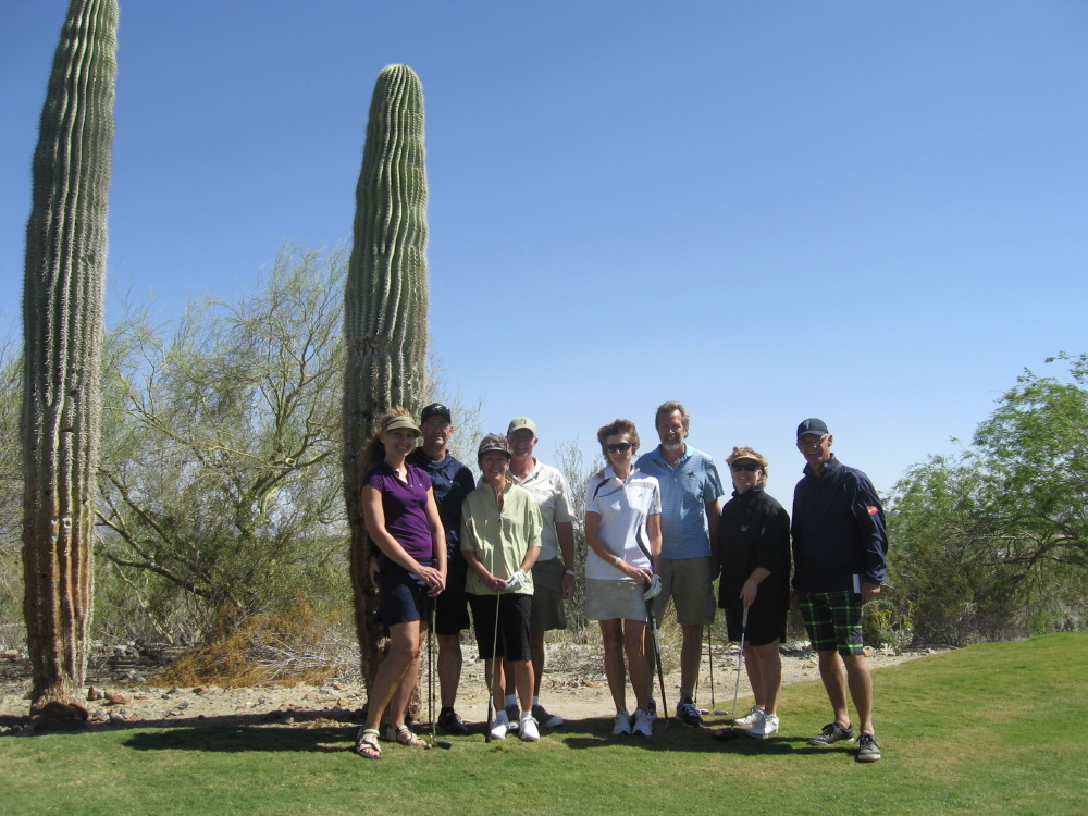 Monday: Woke up just after 6. A quick breakfast and shower and then we were on our way to Goodyear. We were a bit worried about making it there on time for our 10:00 tee time, but we managed to stay in the HOV (high occupancy vehicle) lane most of the way and even had time to fill up gas before joining our friends at the Estrella Golf Club. I rode the cart with Reg, while Robert and Henry rode in the second cart. The girls were right behind us, Sue and Ingrid, Arlene and Penny. It was windy but otherwise very comfortable.